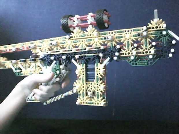 pepinos Hola a todos compañeros Knexers y los recién llegados. mi nuevo disparo, rifle de largo alcance KVG, con alcance real, bípode plegable, verdadero gatillo, cualquier shooter munición, 1,20 m de altura, 110 pies gama con oodammo (conector rojo