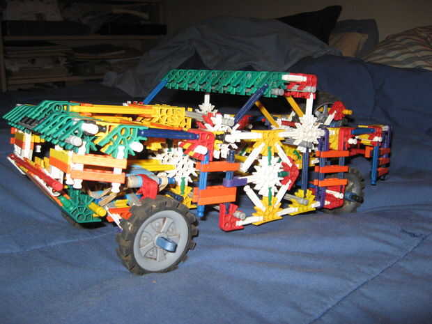 este es mi carro. el cuerpo vino de knex.com.también decir lo que quieras acerca de estoPaso 1: step1:get las partesbarras deverde: 39-42blanco: 33azul: 2amarillo: 4rojo: 1conectorestan/azul clip: 5Dirección de la rueda: 1y clip: 4gris oscuro: 15nara
