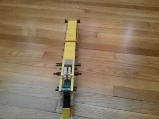 he hecho una ballesta cool que puede disparar +-150 pies.No tiene un gatillo como las otras porque me enteré que se puede utilizar toda la potencia de la ballesta luego.Utiliza las ruedas de repartir el poder en las bandas de goma para hacerlo dispar