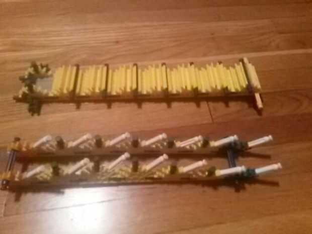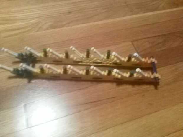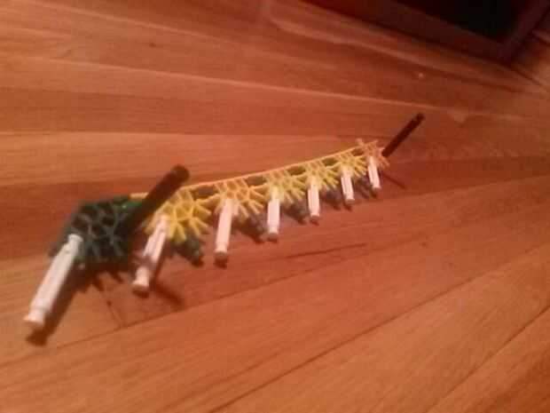 Estos son armas casi por completo hice yo mismo y pido chicos para decidir si debo publicarlos.El doble gatillo V1 dispara alrededor de 40 pies con la parte inferior, y (creo) 60 pies con la parte superior, si utilizas bastante elásticos.Los brotes d
