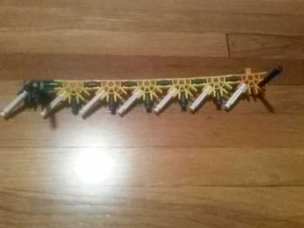 construir la barandilla en las dos primeras fotos, a continuación, construir un segundo sobre, pero sin las dos barras azul en el extremo. A continuación, ponga juntos así como en la tercera foto. Finalmente conectan a la tapa del pasamano como se muestra en el cuadro quinto.