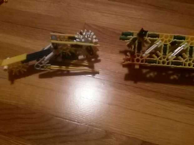Estos son armas casi por completo hice yo mismo y pido chicos para decidir si debo publicarlos.El doble gatillo V1 dispara alrededor de 40 pies con la parte inferior, y (creo) 60 pies con la parte superior, si utilizas bastante elásticos.Los brotes d