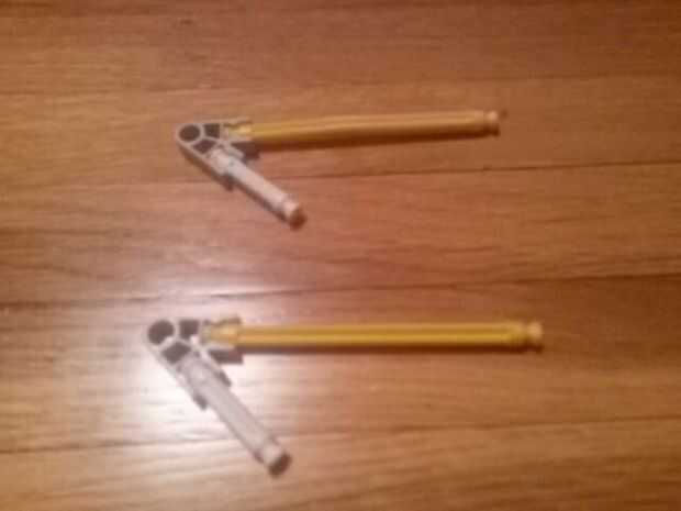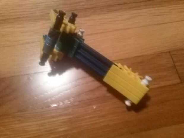 Acuttly pistola de Lego que dispara!Paso 1: Estructura básica necesita un lanzacohetes con cohete. Conecte el Lanzacohetes a la 2 14x1s. Ponga un 4 x 14 plano en la parte superior o hacer un sustituto en él añadir un gatillo más largo y ladrillo de 2