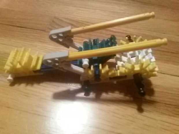 he hecho una ballesta cool que puede disparar +-150 pies.No tiene un gatillo como las otras porque me enteré que se puede utilizar toda la potencia de la ballesta luego.Utiliza las ruedas de repartir el poder en las bandas de goma para hacerlo dispar