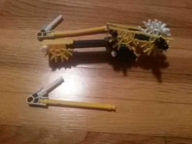 Las dos primeras fotos muestran la "rueda" en el que se inserta la goma al disparar. La tercera imagen muestra el gatillo. Esperamos que a través de las siguientes tres imágenes puedes ver cómo se hace el gatillo. Finalmente hacer dos piezas como se muestra en el cuadro VI. A continuación montar las piezas como se muestra.