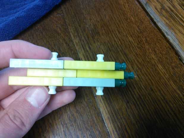 Esta parte es la parte que la flecha se sentarse y viajar mientras está en el arco. Admito que el ferrocarril no es mi propio diseño sino de una pistola de K'nex viejo de otro instructivo que no pude encontrar. Si encuentras el instructivo por favor comentario y se atribuyen el carril a este Instructable. Pasar. Esta parte es probablemente la frustración más que parte del instructable, así que sea paciente e ignorar el dolor pulgar y los dedos. El carril hace de conectores D amarillo, corta barras verdes y barras blancas. Por favor ver los cuadros de notas en instrucciones de construcción específicos.