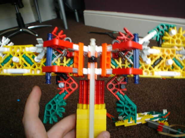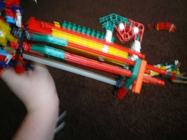 Hi this is my knex crossbow. La ballesta tiene un sistema anti-bloqueo para el disparo rápido. Tiene un compartimiento de 16 balas que resulta bastante rápido en recargar. Una velocidad de aproxamate de disparar balas de todos es de 25 segundos con v