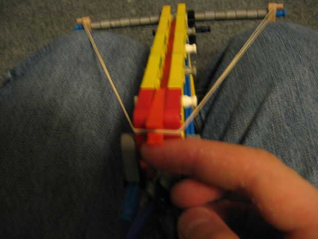 he hecho una ballesta cool que puede disparar +-150 pies.No tiene un gatillo como las otras porque me enteré que se puede utilizar toda la potencia de la ballesta luego.Utiliza las ruedas de repartir el poder en las bandas de goma para hacerlo dispar