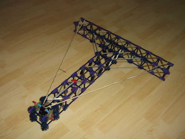 Hola chicos, aquí está otro KVG ballesta. Muy simple (siempre lo mismo) y muy fuerte. Tiene el aspecto de una ballesta pero tal vez un poco más grande. Sistema de gatillo por mi, increíblemente eficaz incluso con fuertes bandas de goma. Usted necesitará un montón de barras azules (las que están entre las barras de oro y negras (tengo los de una grúa enorme en el conjunto de minas perdido)), barras de oro y púrpura conectores. Yo no traté de disparar a través de papel, pero puedo ver la marca en la pared cuando estoy rodando en 10'. Munición simple y estable. Divertirse Knex'ing.