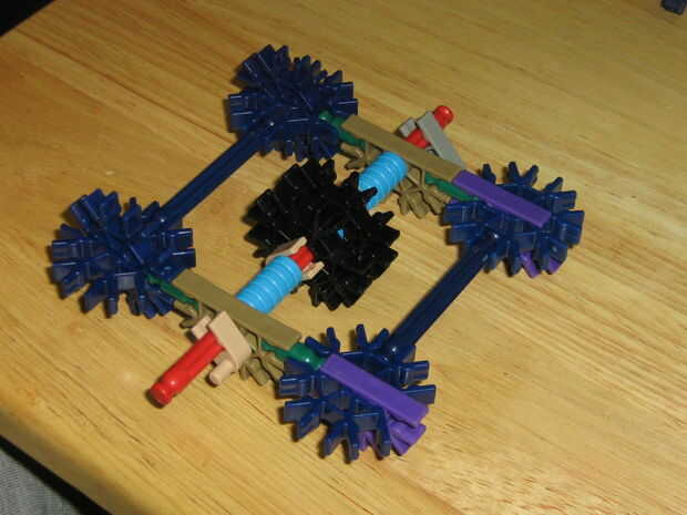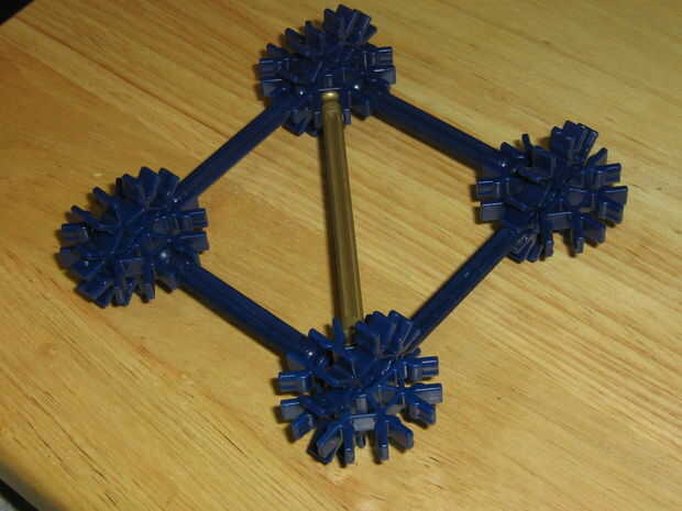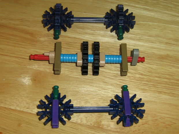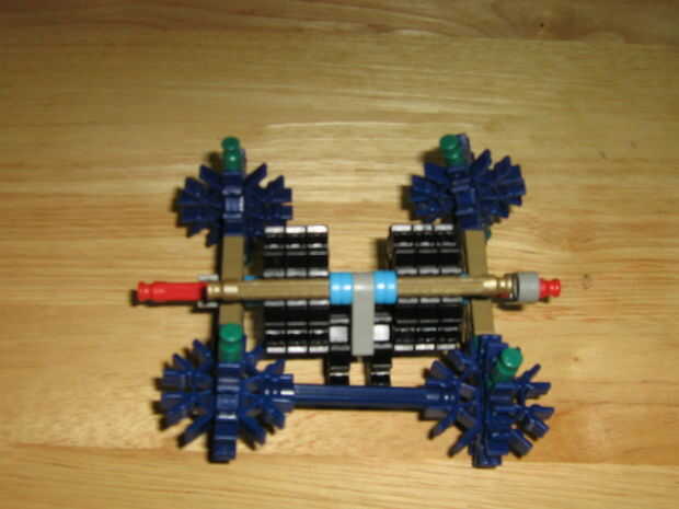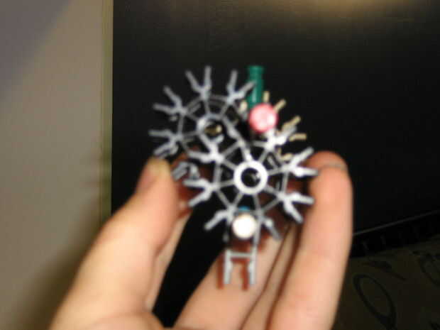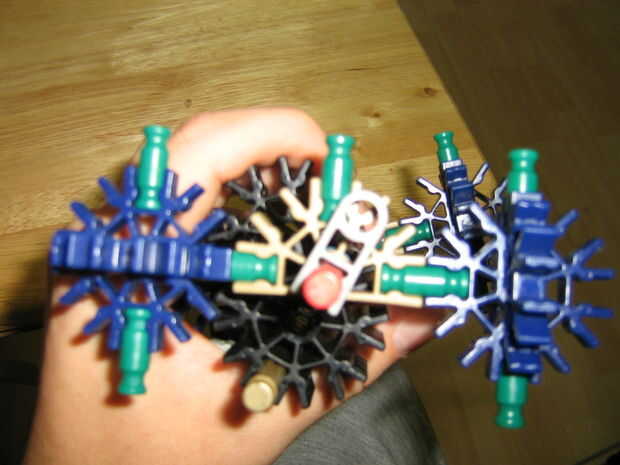 Luego agregue las bolas azules (formadas por 2 conectores azules recortados en) con algunas barras verdes. Ver foto. 4 y 5 para el armado