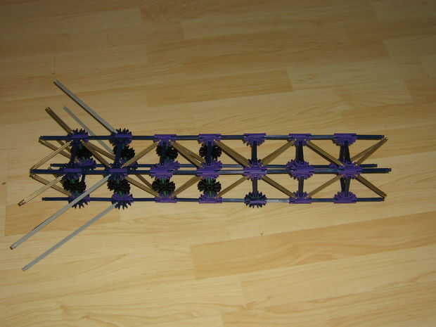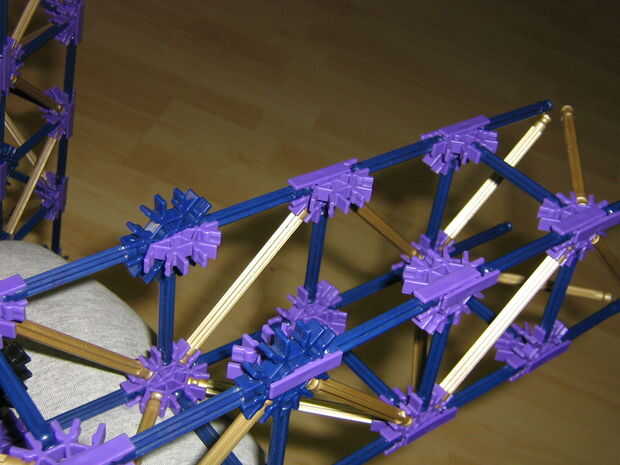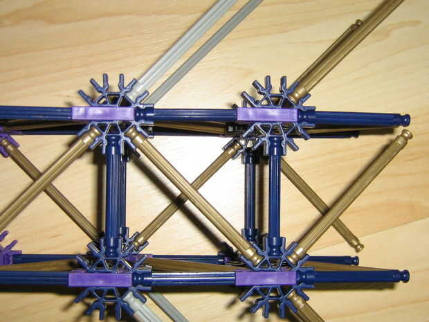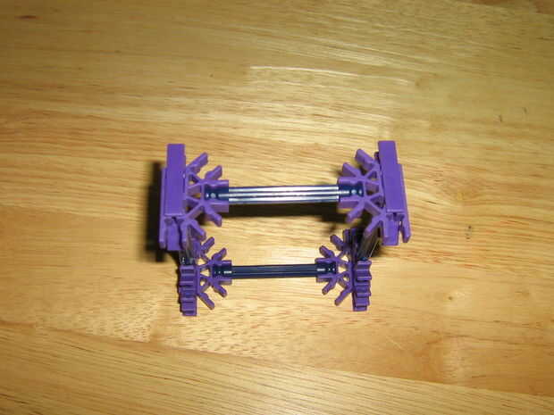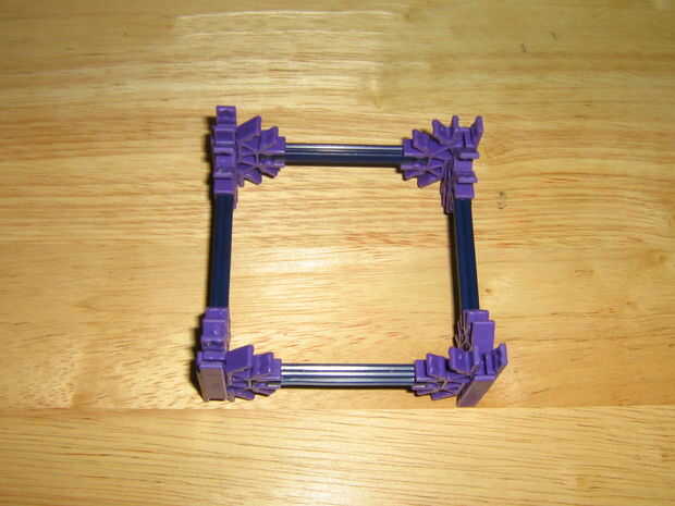 Foto 2. Construir 4 los y unirlos, utilizando barras de azul y barras de oro. Construir 2 de ellos utilizando conector azul + Conector morado en vez de púrpura + púrpura.