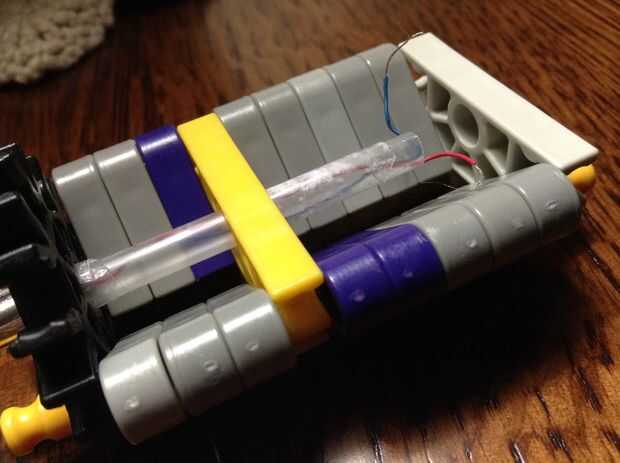un día encontré una hélice en mi caja de KVG. Mi hermana tenía un helicóptero de control remoto que no ha trabajado durante mucho tiempo por lo que arrancó los motores y había conectado una pajita que era del mismo tamaño y lo había grabado y funcionó los cables a través de la paja y pone KVG en él.