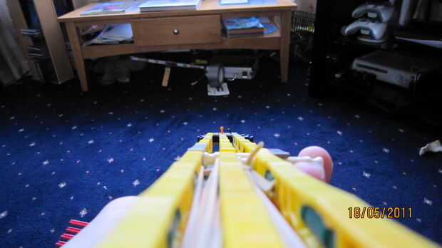 Esta arma dispara dos barras azul.Comenzó como un Spas-12, pero decidí cambiarlo.Si suficiente gente guste puedo postear el instructable o tratar de subir un video.De PRO-Nuevo sistema de bloqueo de la bala (nunca lo he visto antes, dime si tienes)-A