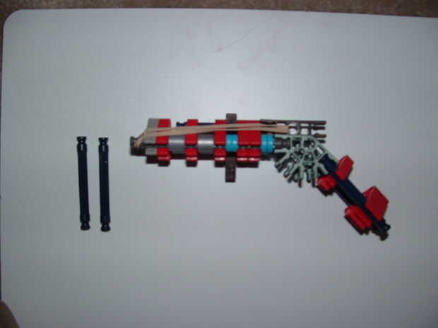 es un arma de simple KVG con desencadenar nuevos lo siento por pequeñas fotos usé mi teléfonoPaso 1: barril acaba de poner conectores rojo 11 en una barra rojaPaso 2: gatillo hacer este 2 conectores naranja sobre una barra blancaPaso 3: manejar! sin
