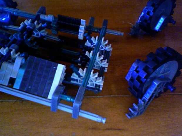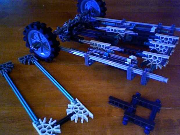 esto es la adición de las parte inferior y delantera ruedas bastante fáciles pero en la uno foto no puede decir qué im agregarlo es los tres conectores negros y las barras de color púrpura