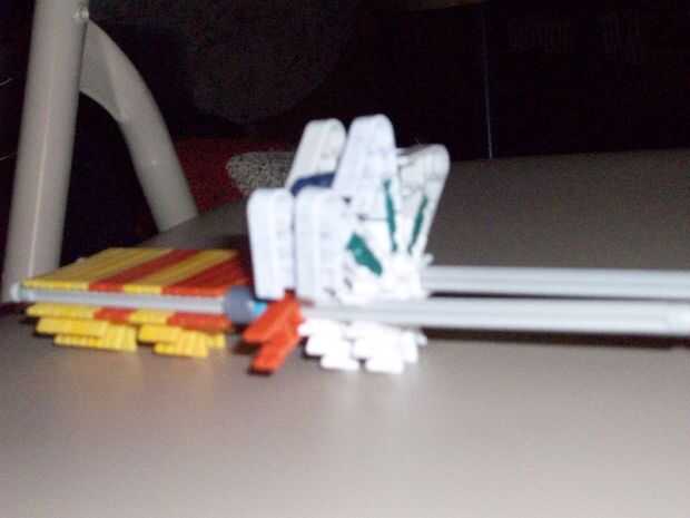 pepinos Hola a todos compañeros Knexers y los recién llegados. mi nuevo disparo, rifle de largo alcance KVG, con alcance real, bípode plegable, verdadero gatillo, cualquier shooter munición, 1,20 m de altura, 110 pies gama con oodammo (conector rojo