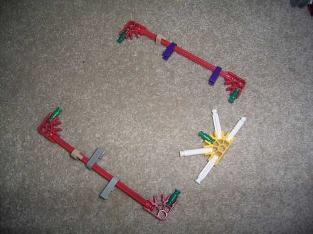 un pequeño carro de ferrocarril de K'nex funcional / aparejo con la pista.Paso 1: Lista de piezas JIGGERConectores:Verde: 4Rojo: 2Gris oscuro: 10Gris claro: 2Púrpura: 8Bronceado: 2Amarillo: 19Azul claro: 2Blanco: 4Barras:Blanco: 38Azul: 3Rojo: 1Amari