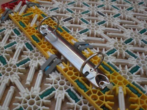 De todos modos, se trata de una carpeta, pero con KVG! Mal ser honesto, no siempre la cosa más asombrosa. Utiliza la parte de 'enlace' de una carpeta real, y 2 zipties pequeño para sostenerlo en lugar. Las conexiones pivote son realmente muy fuertes y por lo tanto es la cosa general. Puede sostener la cantidad estándar de papel en él (aprox. 200-300 hojas)