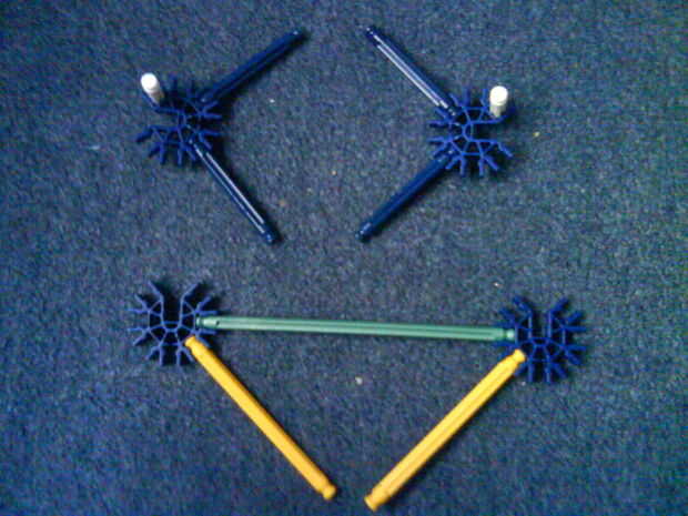bola de KVG (no flexibles)barra amarilla: 80barra azul: 32knex:56 verdeKVG blanco: 26Paso 1: bola KVG ahora tenemos que hacer el anillobarra amarilla: 16barra azul: 32knex:24 verdeknex:24 blancoPaso 2: bola KVG ahora que les sumebarras amarillas: 24b
