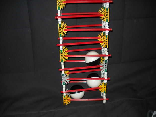 aquí están las instrucciones sobre cómo hacer la máquina más pequeña de la bola en instructables.Paso 1: Lista de piezasLista de piezasBarras deRojo - 1Amarillo - 12Azul - 26Blanco - 12Verde - 30ConectoresAzul - 15Amarillo - 10Violeta - 27Rojo - 2Gri