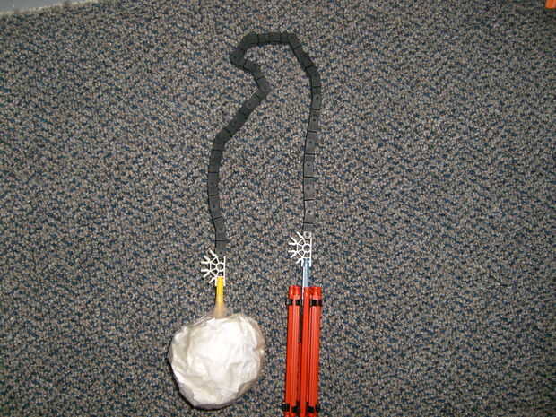esto es mi bola y cadena gracias a la idea de Cowscankill. ¡ Disfrute!Paso 1: Reunir los materiales.Varillas: 16Gray flexible (o morado o amarillo o claro), amarillo tamaño 8 Bendy, 29 blanco, azul 20, 1 pequeño negro (o verde)Conectores: 10 morado c