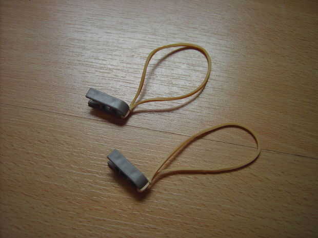 4) añadir las gomas a la chincheta (quitar la parte posterior mientras que la adición de las bandas de goma)
