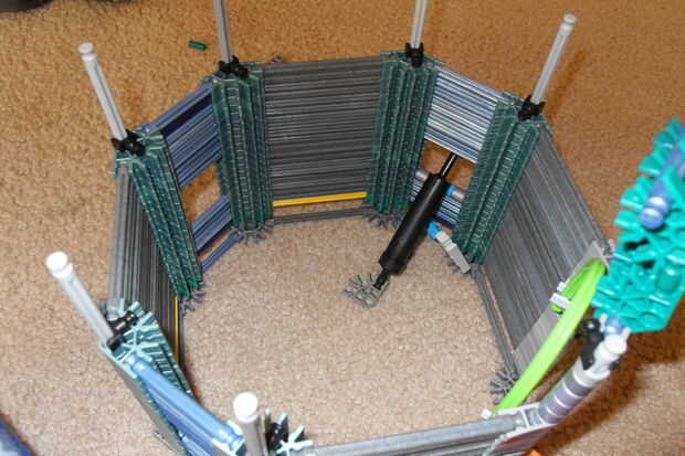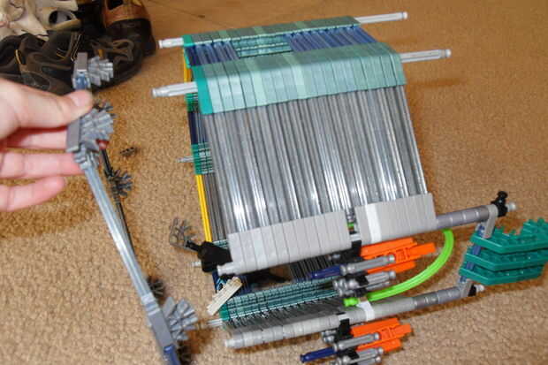 esta es mi primera máquina de la bola, creo que es bastante bueno para mi primero que utiliza Tornado96 y Shadowman39 de alternando elevación del brazo. Había basado en una trayectoria que se enrolla alrededor de una pequeña torre que las bolas rueda