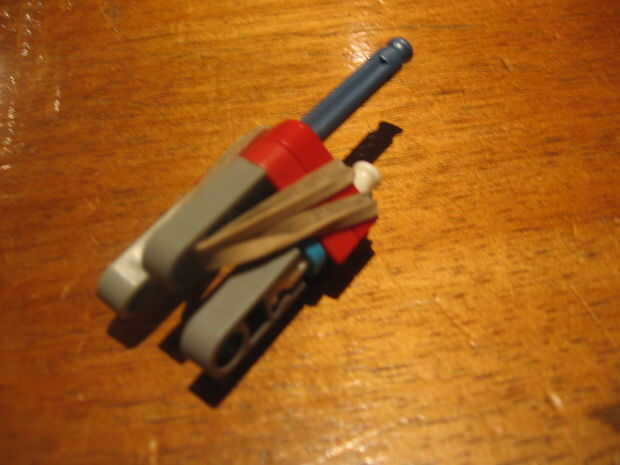 esto es una pistola de KVG diseñé con compartimientos de doble carga que fácilmente pueden disparar más de 40 pies con buenas gomas y pueden progresar con minerales, o de bandas de caucho más fuerte. Puede contener 25 barras azules a la vez, por lo q
