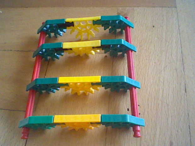 este es mi primer instructable tan por favor tarifa y me dicen cosas podría mejorar.se necesita:30 formas de rojo23 formas de naranja7 palos gris10 separadores azul2 formas de gris6 formas de amarillo1 forma amarillopalos blancos 22 palos verdes1 ban