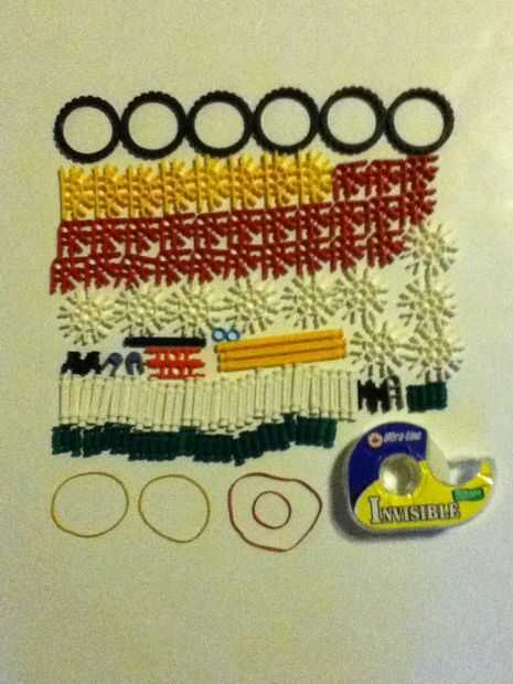 este es mi primer instructable tan por favor tarifa y me dicen cosas podría mejorar.se necesita:30 formas de rojo23 formas de naranja7 palos gris10 separadores azul2 formas de gris6 formas de amarillo1 forma amarillopalos blancos 22 palos verdes1 ban