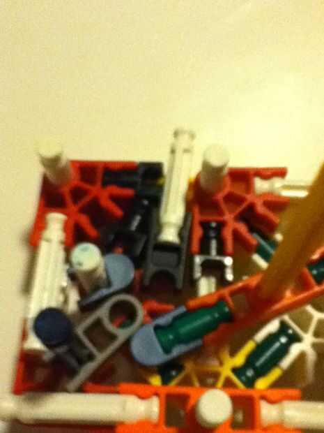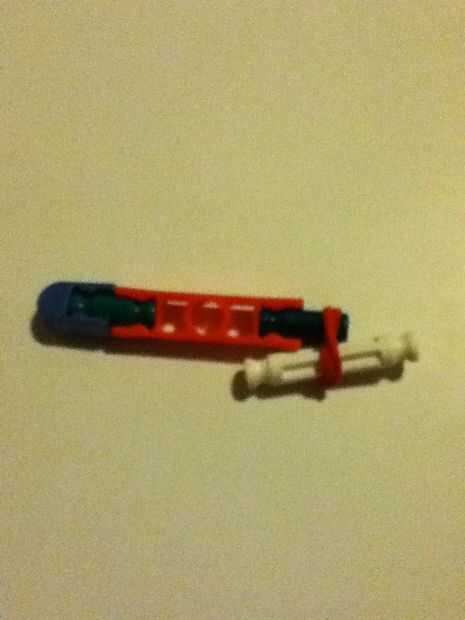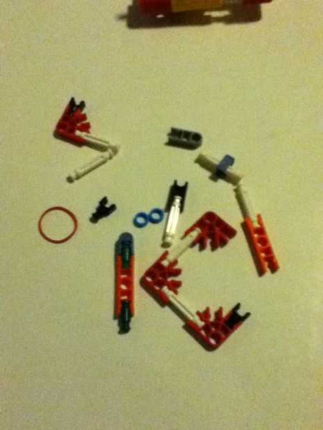24 requiere KVG piezas, dos pequeñas bandas de goma y algunas pequeñas bandas de goma para munición (trabajo de bandas de refuerzo).Paso 1: El mango Paso 2: Cañón y disparo Paso 3: Mecanismo de carga Paso 4: Juntándolo todo Puede que tengas problemas
