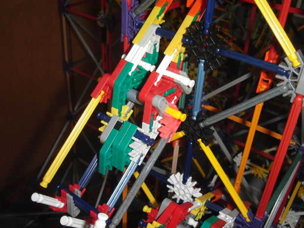 Si su aparato sigue sin funciona, puede construir versión de Sorunome , que se muestra en los cuadros 3-4. Él cambió de puesto la parte final del brazo por 2 espaciadores azul hacia el centro de la elevación, como se muestra en la figura 4. Note que la barra amarilla es todavía en lugar de la barra azul.