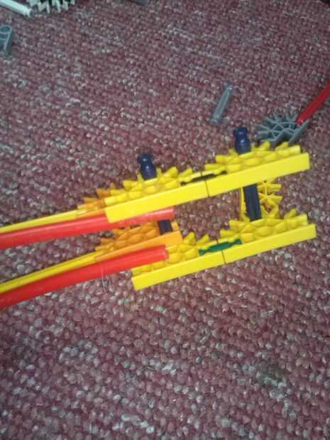 Hola, este es mi primer instructivo! Este camino utiliza bolas regulares y debe tener la velocidad que llega a trabajar.Partes:Barras:Rojo: 1Amarillo: 20Azul: 60Blanco: 13Verde: 40Conectores:Gris oscuro (1 ranura): 9Naranja (recto): 38Rojo: 8Verde: 2