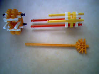este arma es una pistola de 8 banda de goma tiro semiautomático con un giro, su hecho totalmente de K'NEX!!!!!! Cuando lo piensas bien es un muy simple mechinism, me topé con él mientras estaba tratando de disminuir el índice del fuego de un arma tot
