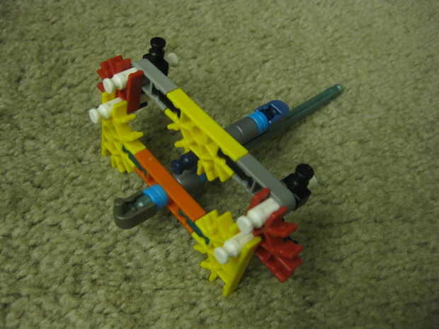 esto es una pistola de KVG diseñé con compartimientos de doble carga que fácilmente pueden disparar más de 40 pies con buenas gomas y pueden progresar con minerales, o de bandas de caucho más fuerte. Puede contener 25 barras azules a la vez, por lo q
