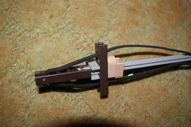 el Teazer tendrá bandas de goma de 4-7 y a dispararles uno a uno. Estuve 2 semanas tratando de perfeccionar el mecanismo de disparo que encendería sólo 1 shot cada vez que apriete el gatillo. Finalmente lo conseguí. El mango puede ser demasiado grand