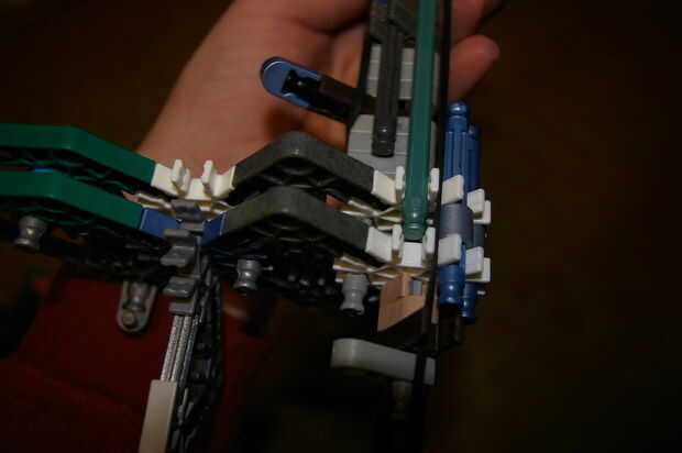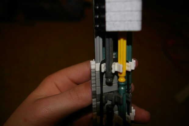 Es bastante simple. Fije la banda elástica tirando todo el clip de munición y la varilla gris más cercana y luego tirando de él, como se muestra en la figura 2, en la parte inferior del gatillo a la diapositiva, que ahora necesita para insertarse en la parte posterior de la pistola.