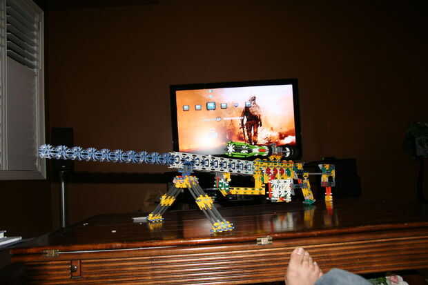 pepinos Hola a todos compañeros Knexers y los recién llegados. mi nuevo disparo, rifle de largo alcance KVG, con alcance real, bípode plegable, verdadero gatillo, cualquier shooter munición, 1,20 m de altura, 110 pies gama con oodammo (conector rojo