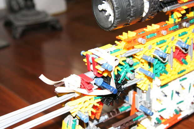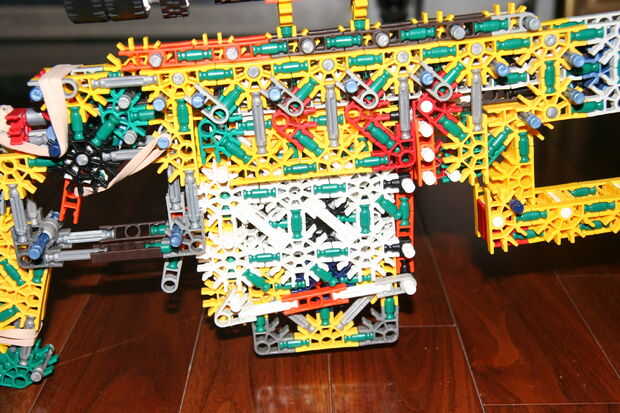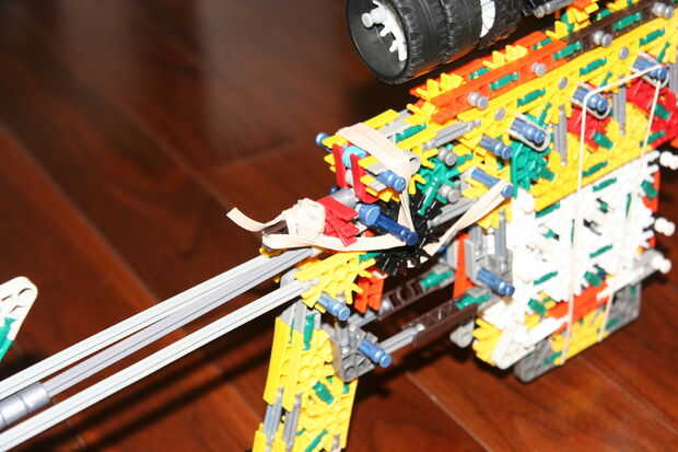 pepinos Hola a todos compañeros Knexers y los recién llegados. mi nuevo disparo, rifle de largo alcance KVG, con alcance real, bípode plegable, verdadero gatillo, cualquier shooter munición, 1,20 m de altura, 110 pies gama con oodammo (conector rojo