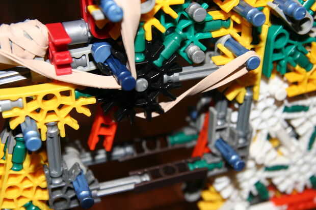 Uno de aquí de mis elementos de la máquina de KVG bola que diseñé hace un tiempo, que he utilizado otra vez en http://youtu.be/wKzJOZih_K8. Balancea la bola de unos 200 grados entonces envía rodando como un 10 pin bowling movimiento.Personalmente, pr