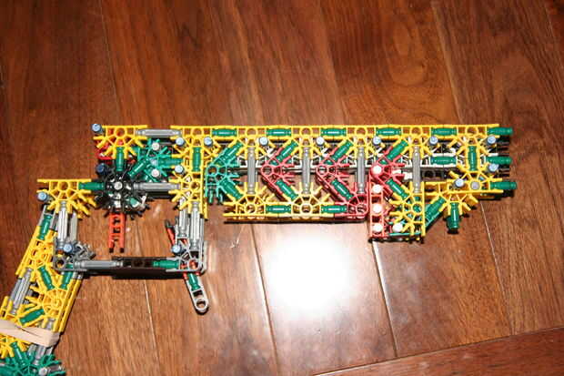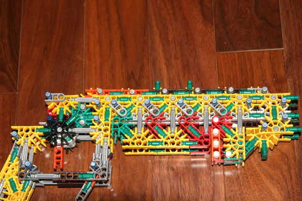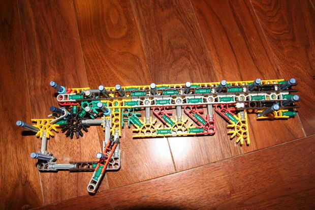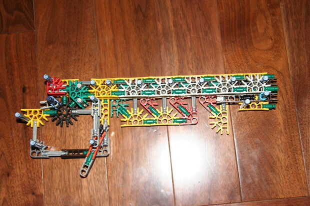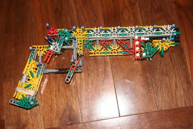 pepinos Hola a todos compañeros Knexers y los recién llegados. mi nuevo disparo, rifle de largo alcance KVG, con alcance real, bípode plegable, verdadero gatillo, cualquier shooter munición, 1,20 m de altura, 110 pies gama con oodammo (conector rojo