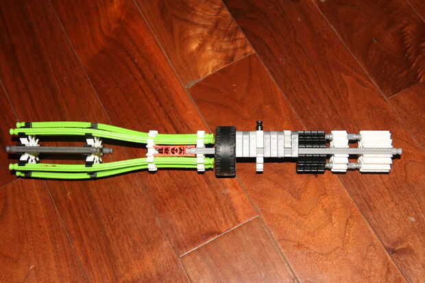 Hola chicos! Este es mi arma más reciente de la serie de LR. Esta pistola dispara flechas reales y es dos veces tan potente como la LKSS. Esto utiliza 5 pies largo 20lb tubería quirúrgica. En teoría esto tiene poder suficiente para derribar a un cier