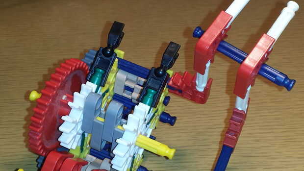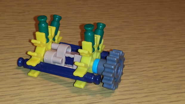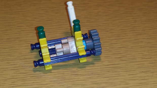 La primera imagen es la apariencia final, hay un panel trasero que sujeta el motor a, la imagen no para arriba de carga, pero ese panel posterior encaje en el conector blanco en la parte trasera, la suspensión del tubo de escape ganchos (barra azul en el centro de amarillo) y el tren motor rojo se sienta en el engranaje azul atado al árbol ,
