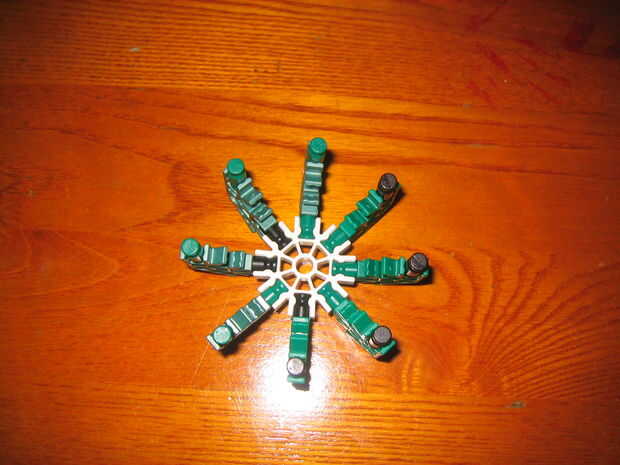 Ahora, en una de las mitades, coloque los conectores cortos de ocho 8 (como se muestra en las dos primeras fotos) y luego juntar las dos mitades (ver tercera imagen).