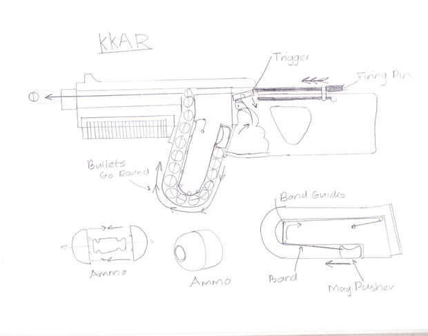 3. mi mech mejor hasta ahora. Esto fue inspirado por esta pistola, de Lego. El motor tira la munición del mag y de la parte superior donde puede escapar. El tiene la capacidad de producir siempre arma de KVG automático más potente y controlable, pero no tengo las partes :(