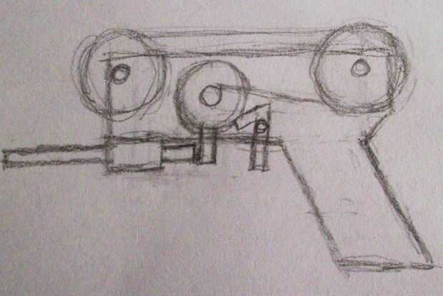 43F28: pistola de perno de rotación: un arma que es alimentado por un elástico largo y grande que se extiende alrededor tanto del arma como sea posible. Está armado girando una manivela 360 grados una vez que permite fuego un solo tiro. Podría llegar a 50 pies de rango con una barra amarilla. -por Oblivitus