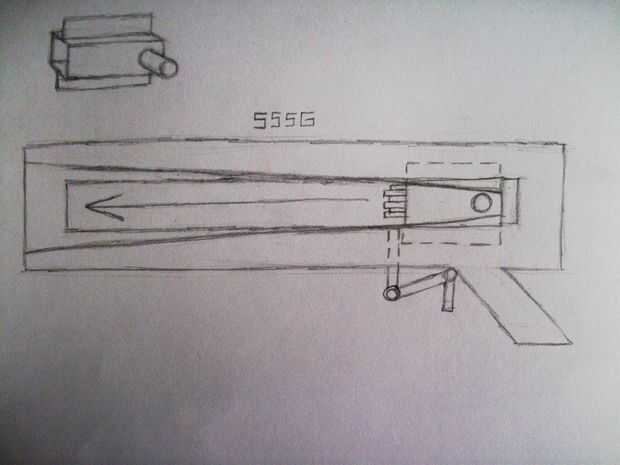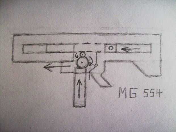 3: MG 554: podría ser una ametralladora o una escopeta dependiendo de cómo construirlo y qué tan rápido que hace fuego (probablemente sería una escopeta). Para amartillarla, un pasador rectangular largo, interno es hacia atrás. Cuando el gatillo, gira un engranaje, un engranaje se gira en sentido contrario por la primera, que entonces gira un neumático (que tiene pisadas de fricción) en una capa diferente, pero se une en el mismo punto de rotación como el segundo equipo mencionado. La rueda girará a la misma velocidad como el movimiento del pasador rectangular. Esta rotación disparará conectores gris de una revista empujándolos hacia fuera a altas velocidades. Relaciones de transmisión puede usarse para alcanzar la velocidad de rotación máxima manteniendo suficiente esfuerzo de torsión (porque la velocidad de rotación determina el rango de los proyectiles). -por Oblivitus