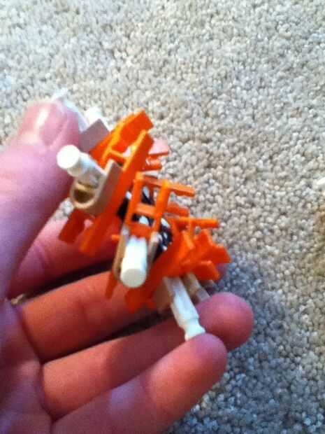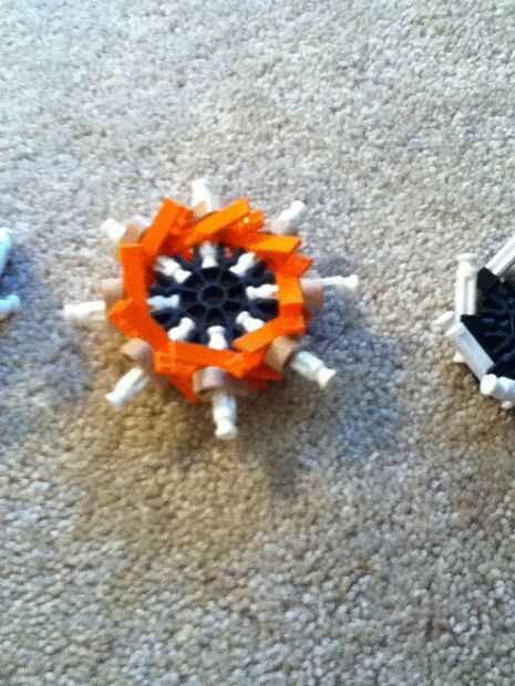 Tomar ocho palos blanco, ocho conectores naranja y los conectores tan y uno círculo conector y como se muestra