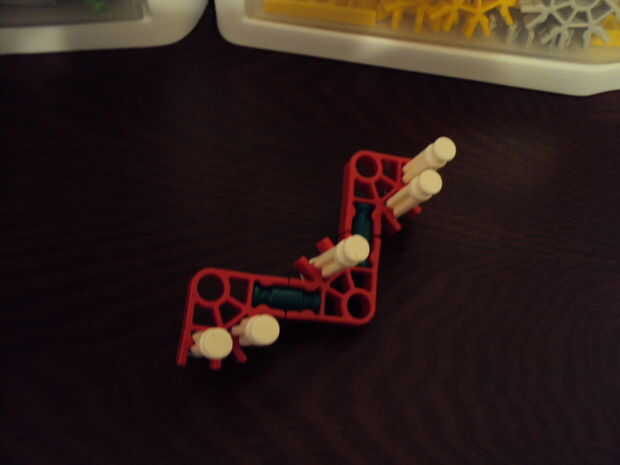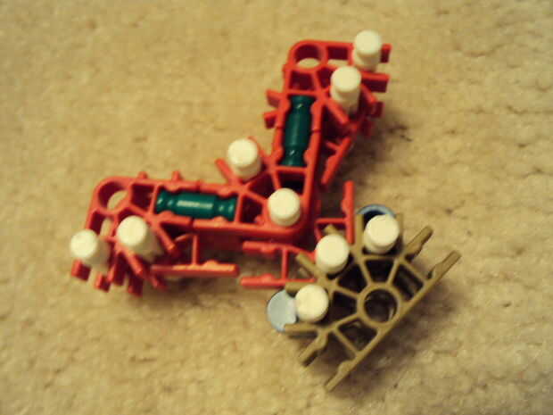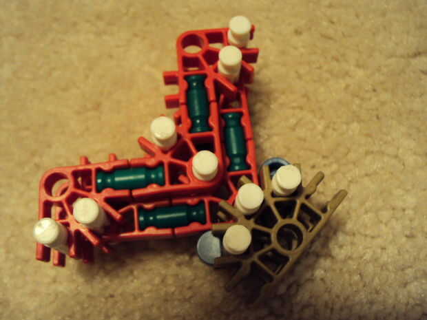 Ahora ir a buscar las partes de la imagen, luego deslice la varilla del blanco a través del agujero que se muestra. Luego ajustar la base para el punto y añadir las dos barras verdes.
