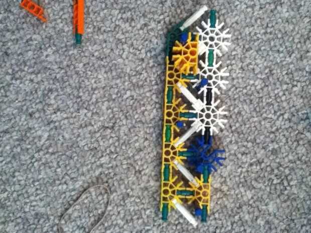 Hola chicos. Este mi primer instructable. Se trata de un objetivo de KVG hice. Si desea instrucciones de uso, vaya al paso 1. O si quieres construir en las fotos, vaya por delante.Paso 1: La Base Piece cont.-4 barras-gris-2 barras-verde-4 x conectore
